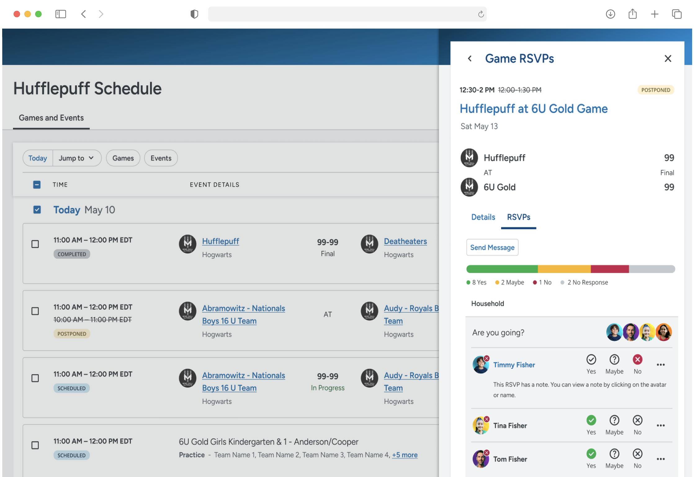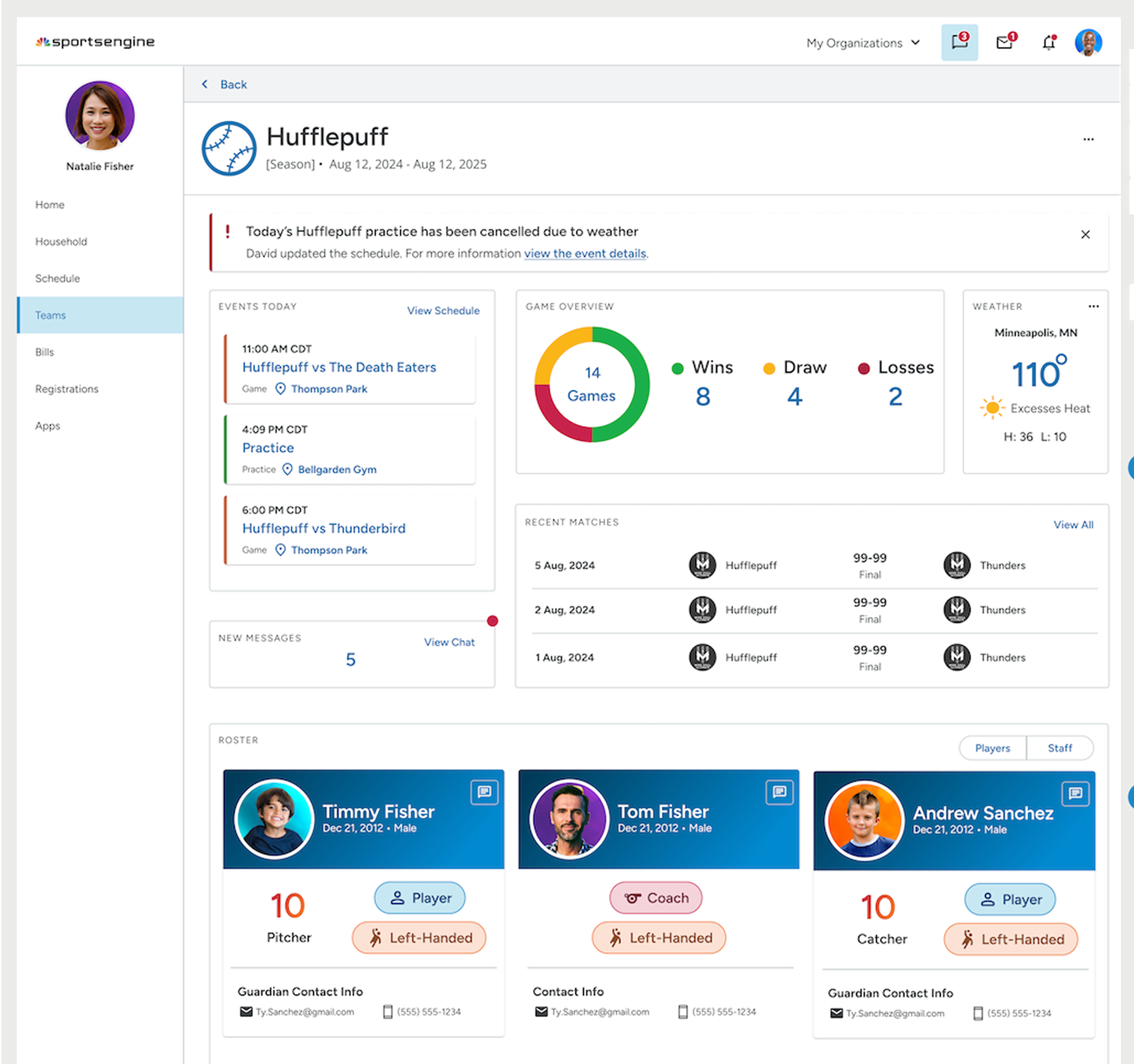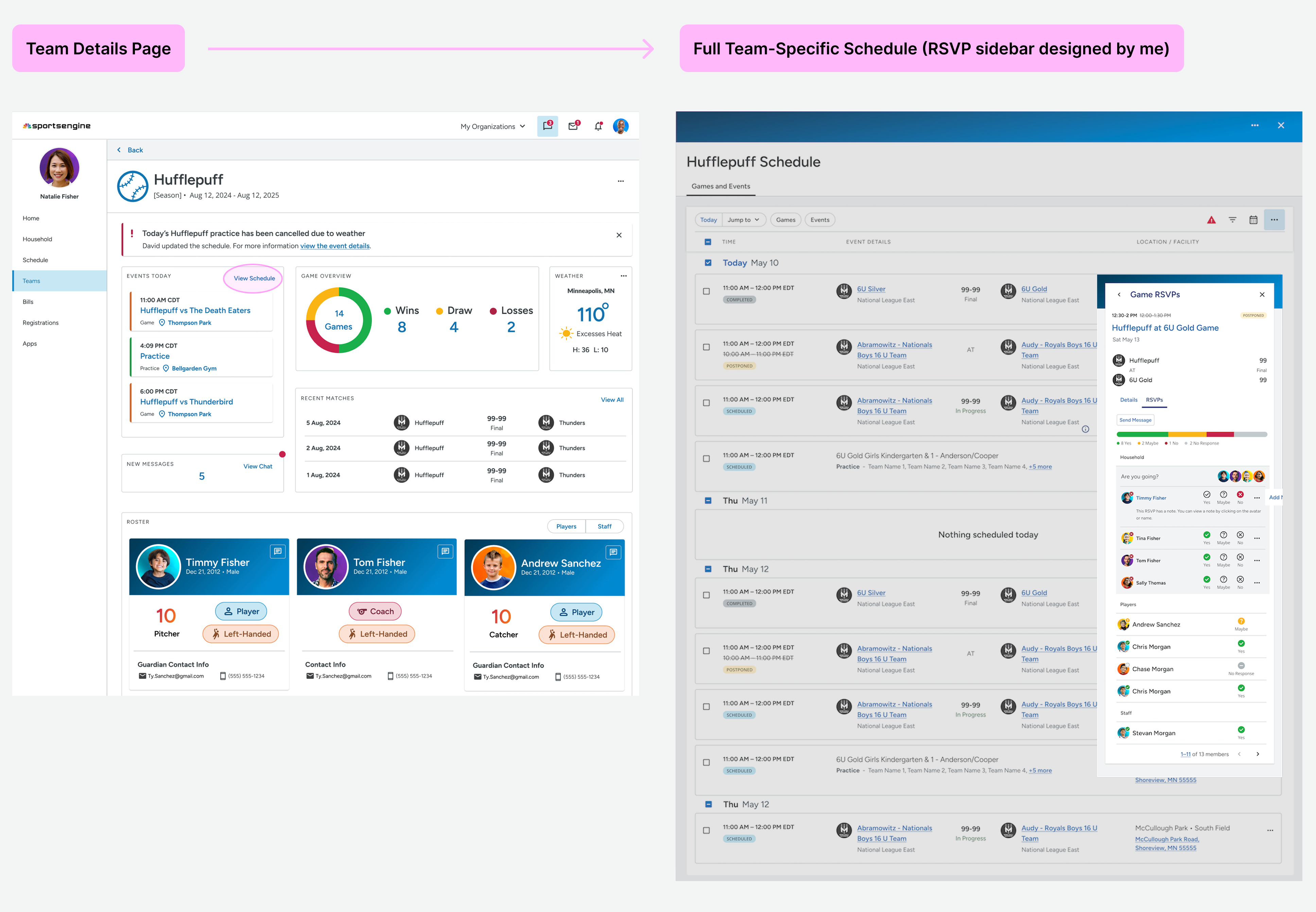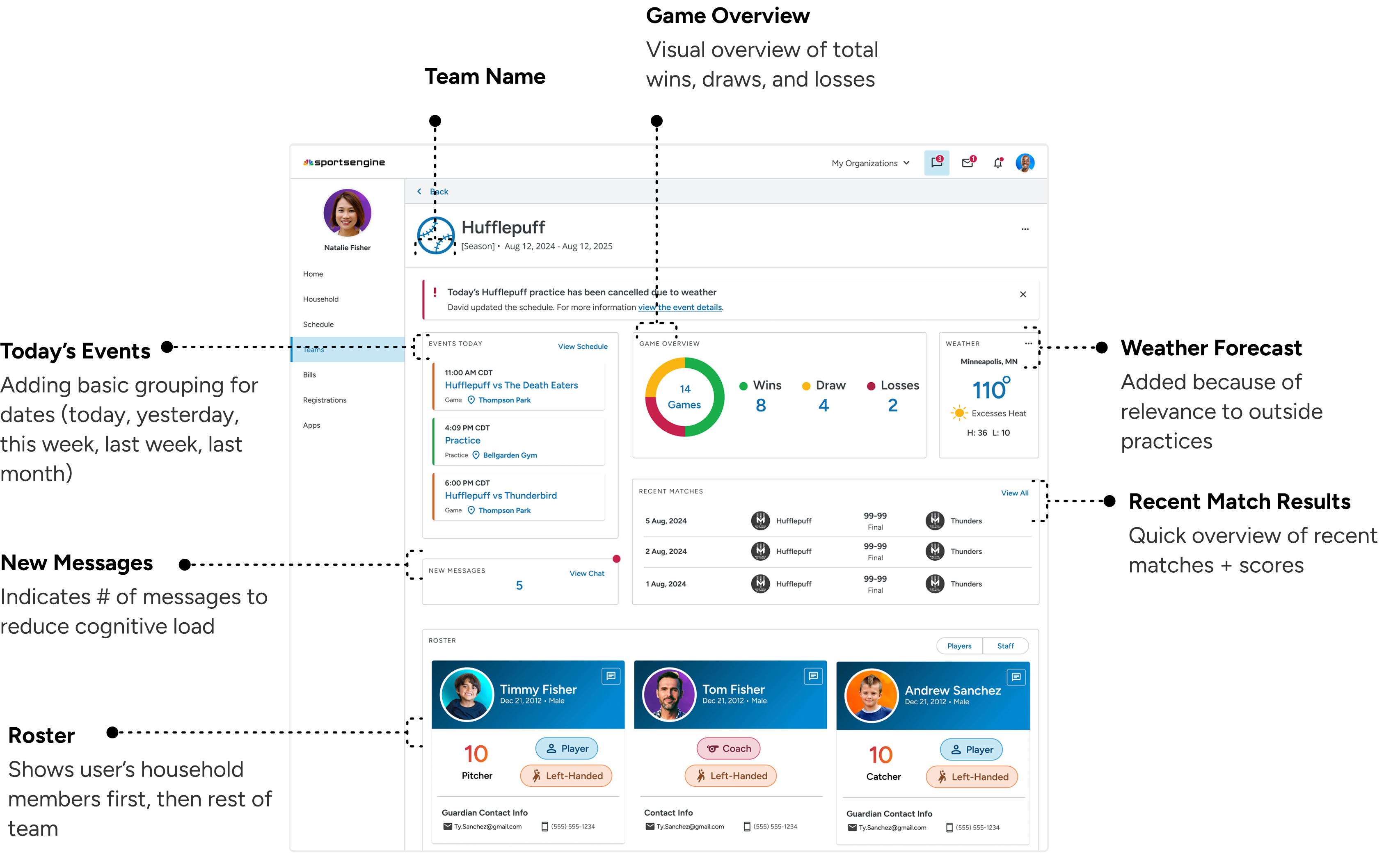 Parents can access key team information in fewer interaction steps compared to the legacy layout