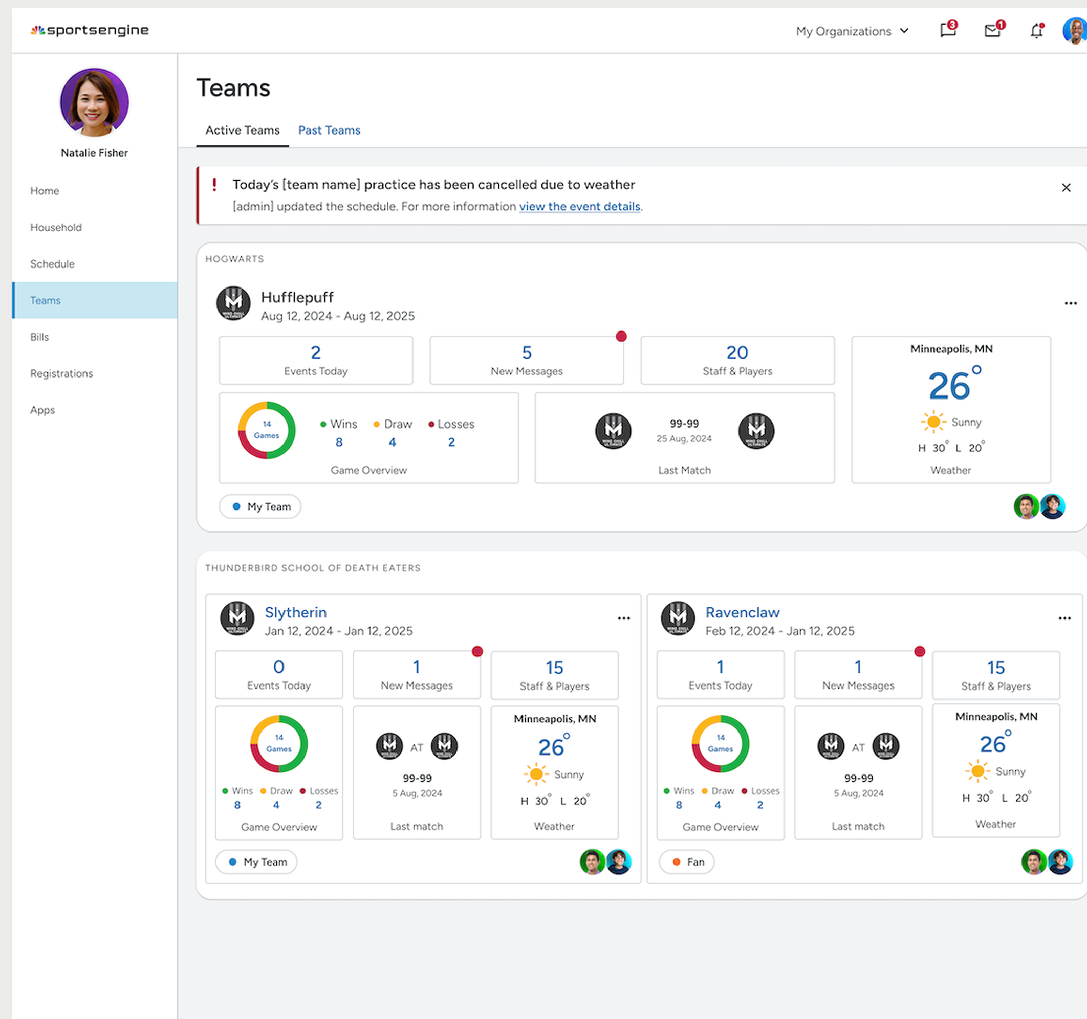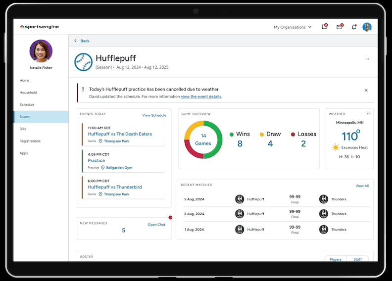 Recent games + game overview widgets fun addition. Relevant for parents invested in team activities.